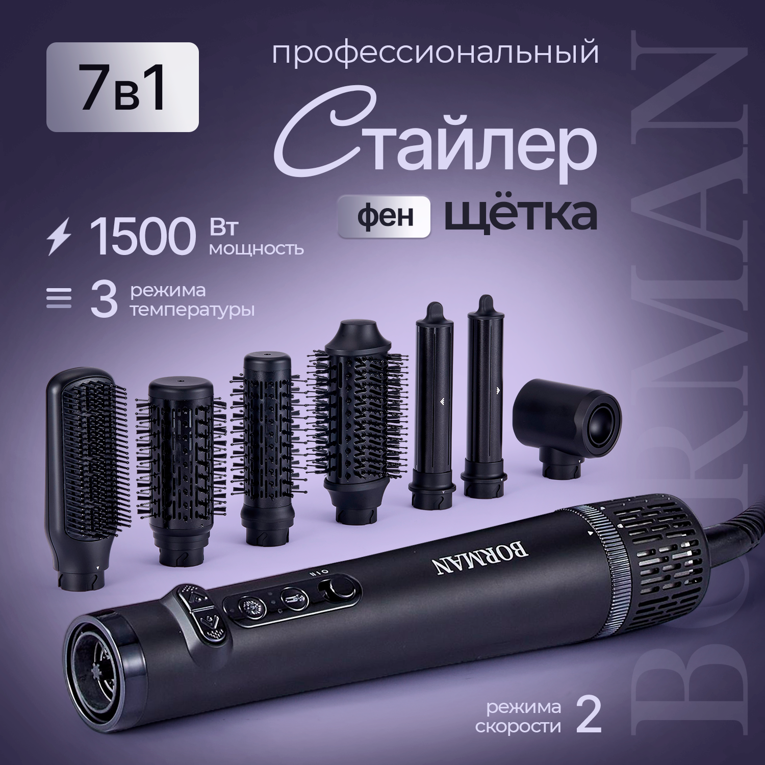 Borman BM931 фен стайлер 9 в 1 с насадками 1400W